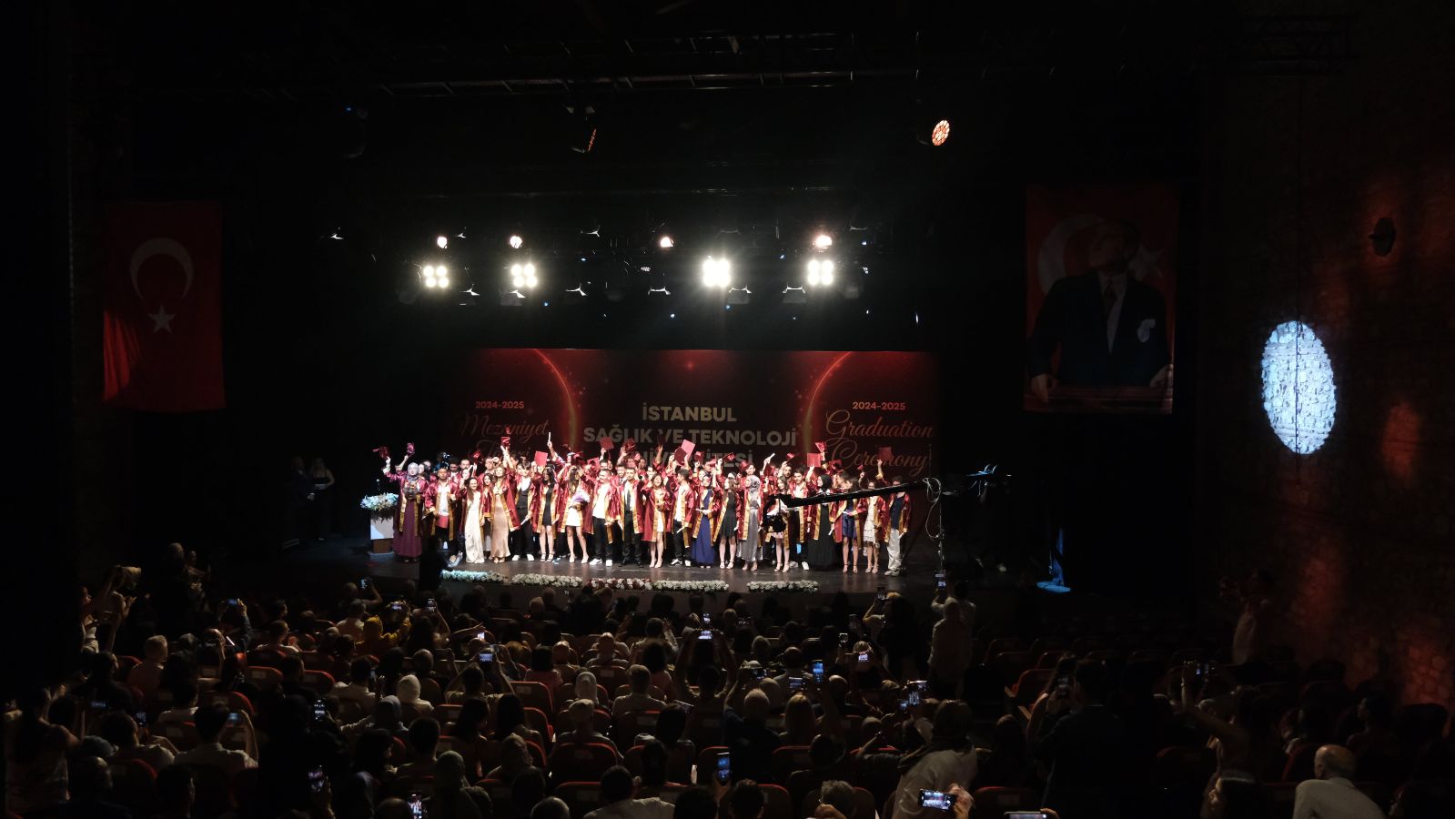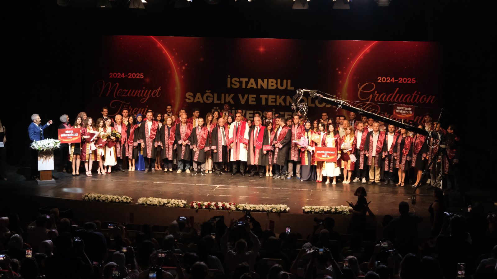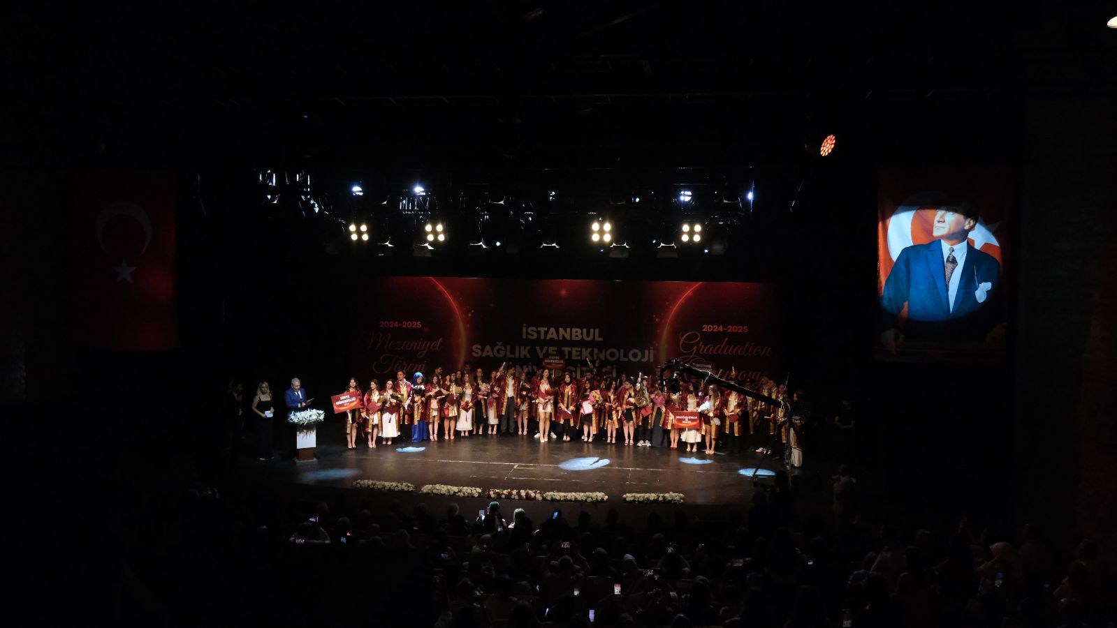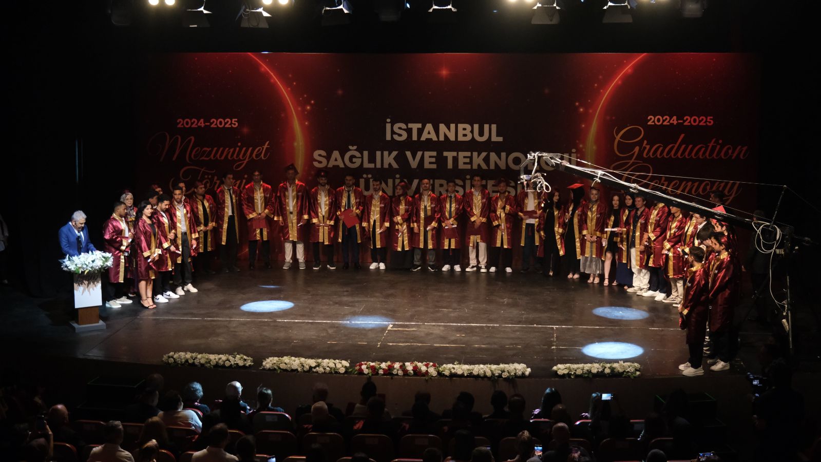 İstanbul Sağlık ve Teknoloji Üniversitesi, 2024–2025 Akademik Yılı Mezuniyet Töreni büyük bir coşkuyla gerçekleştirdi. Fişekhane Ana Sahne'de 10 Ağustos 2025 Pazar günü düzenlenen törende dört fakülte ve bir yüksekokuldan mezun olan öğrenciler, akademisyenler ve aileleri bir araya geldi. Tören, Tıp Fakültesi öğretim üyelerinden Dr. Öğr. Üyesi Ömer Önder Önder’in sunumuyla başladı. İstiklal Marşı ve saygı duruşunun ardından açılış konuşmalarına geçildi.